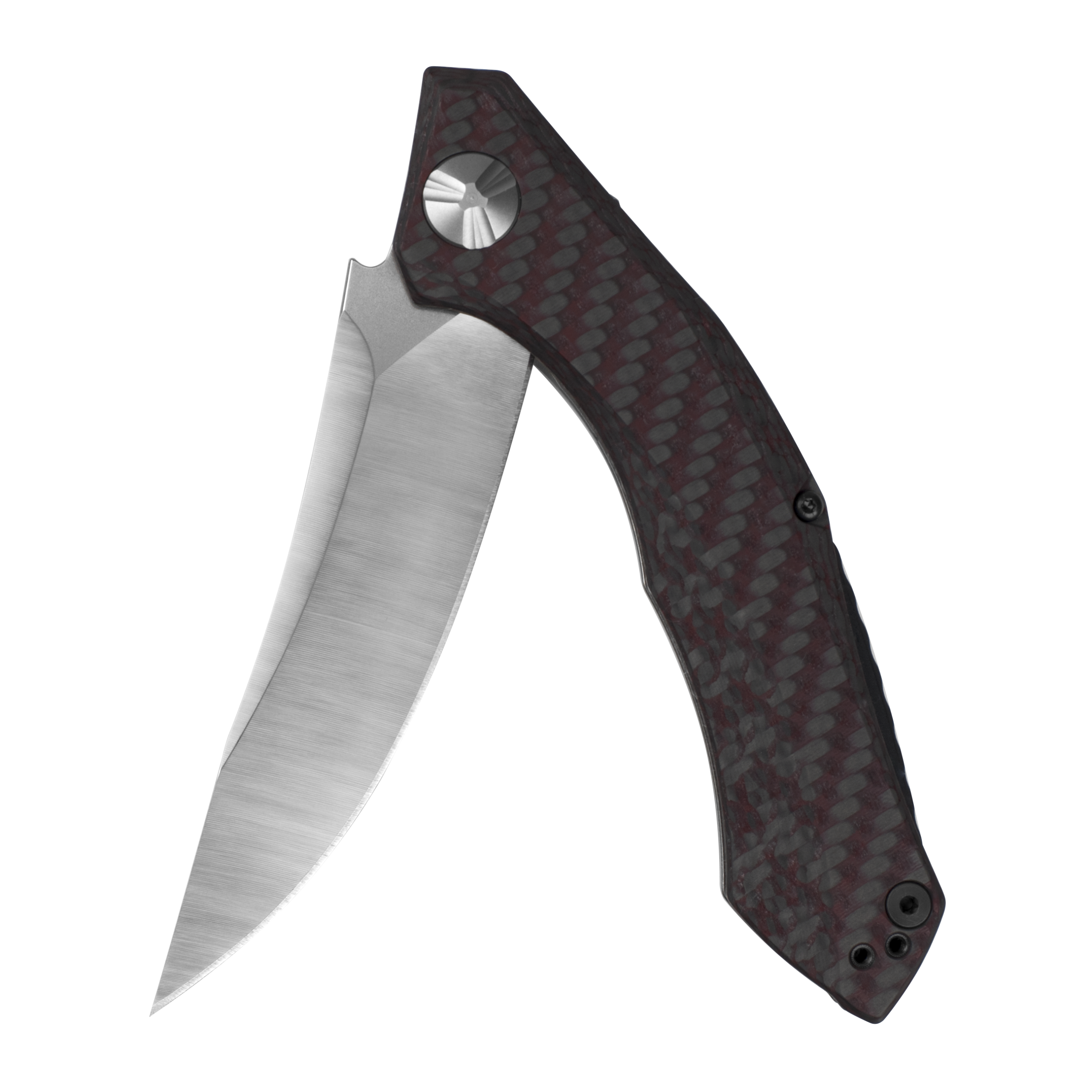 Handle: Red carbon fiber composite front, stonewashed titanium back
