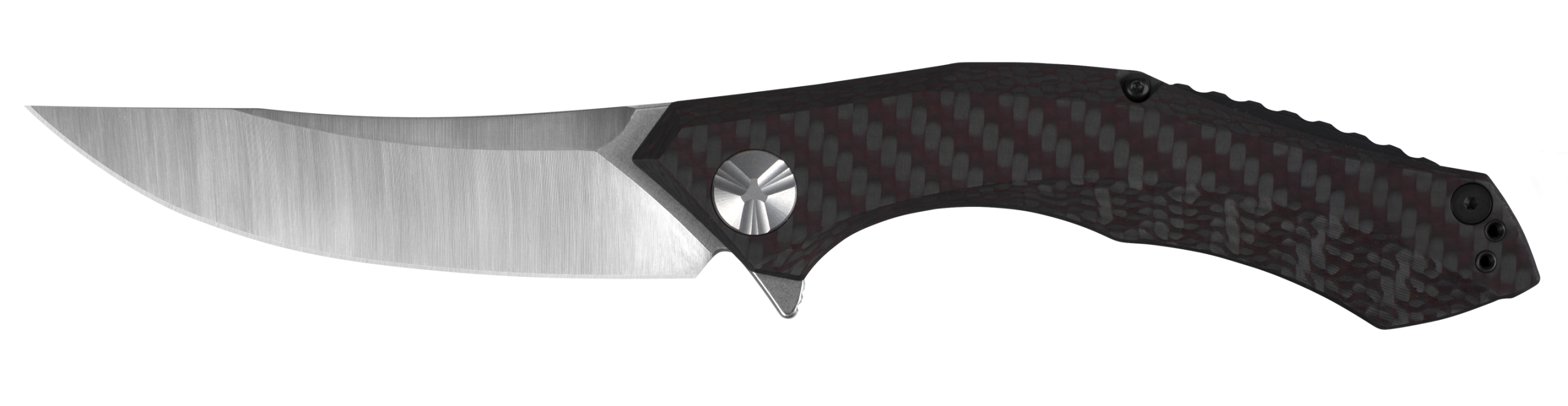 The new 0462 also features a colored carbon fiber front scale with a deep-red weave of color. The back is titanium with an attractive stonewashed finish. The 0462 locks up securely thanks to a frame lock with hardened steel lockbar insert. Like many ZTs, the 0462 opens quickly and easily with the KVT ball-bearing system and a built-in flipper.