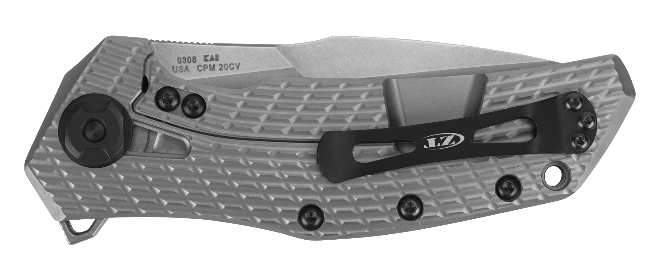 The 0308 opens with ZT’s KVT ball-bearing system and is secured with a sturdy frame lock. The pocketclip is right/left reversible and the handle hole pattern is compatible with many after-market clips. When you want a big knife, this is the one to get your hands on.