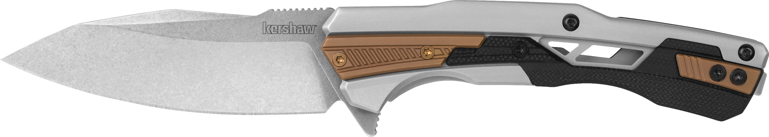 For a combination of high-quality materials, intricate design elements, and practical usability, step into the Kershaw Endgame. After opening the knife with KVT ball bearings, take control of the 3.25-inch drop point blade and use its high-retention D2 tool steel. The handle is contoured for comfortable finger placement, and a deep-carry pocketclip is reversible for convenient carry. Unique design elements help the Endgame stand out, including a series of overlays. Some are made of glass filled nylon and others coated with bronze PVD. This creates an interesting, multi-layered appearance. Being jam-packed with features, the Endgame is the total package for any collection.