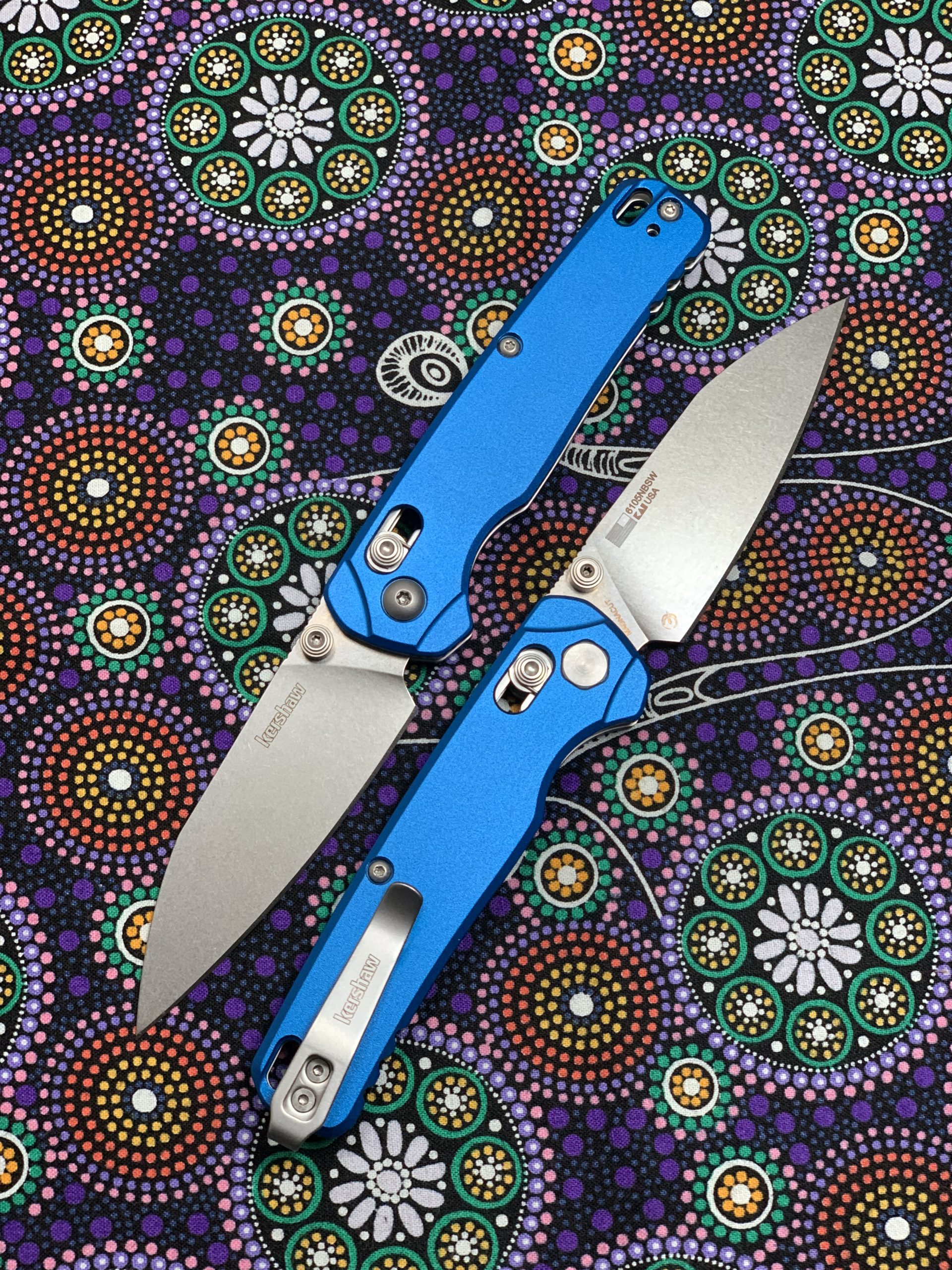- Made in USA, Blue Bel Air; smooth and EDC-friendly design with blue-anodized handle