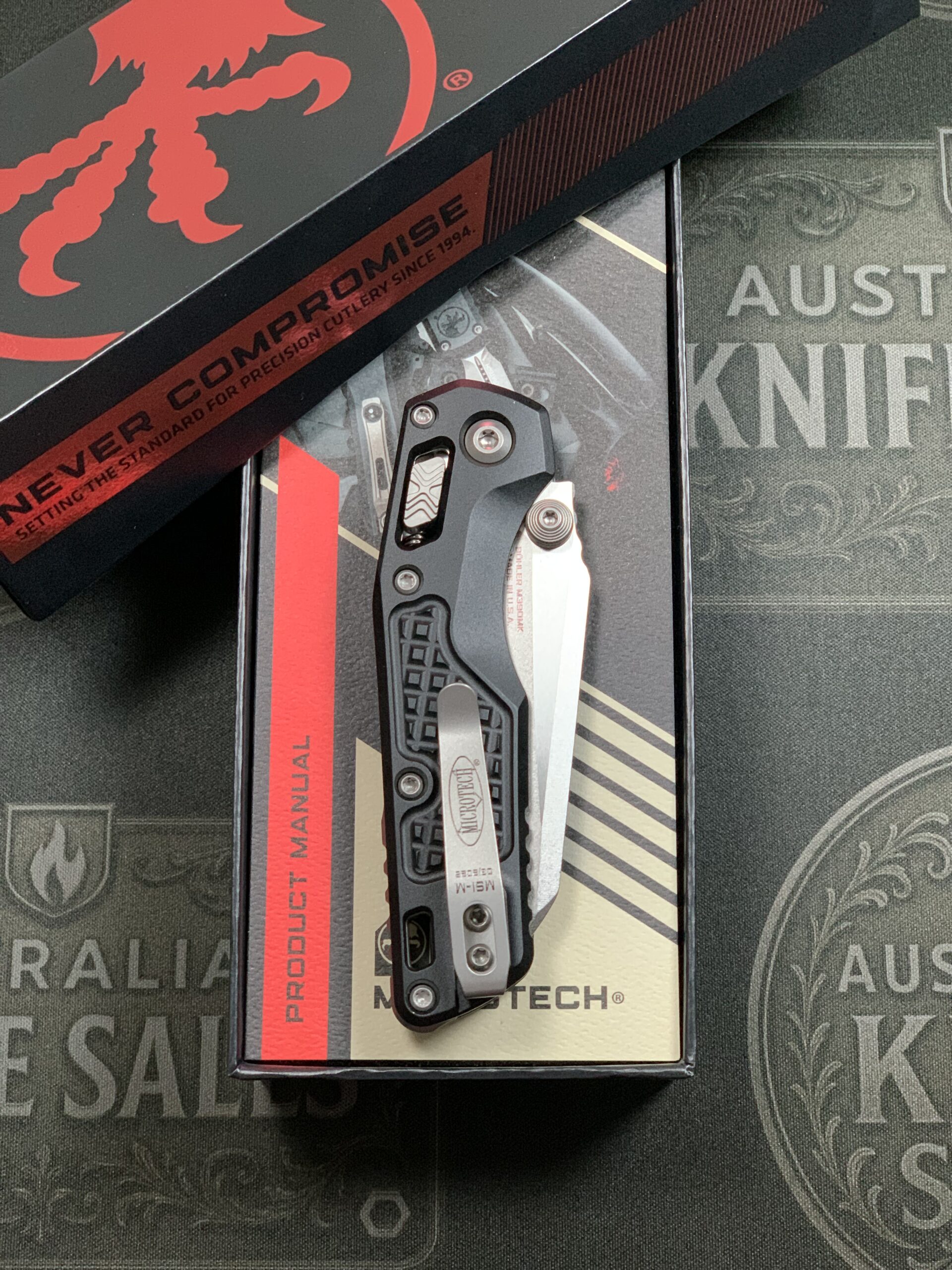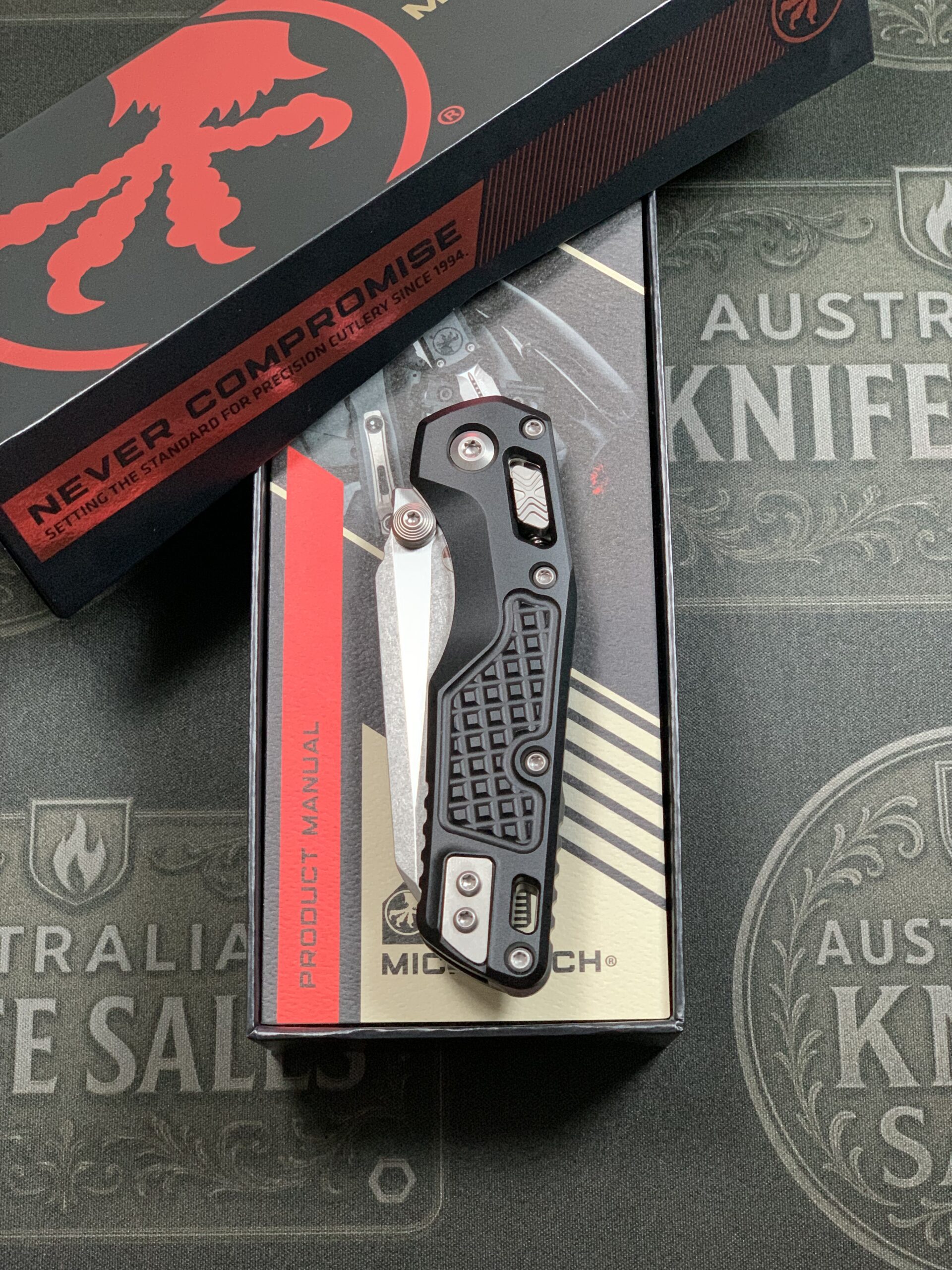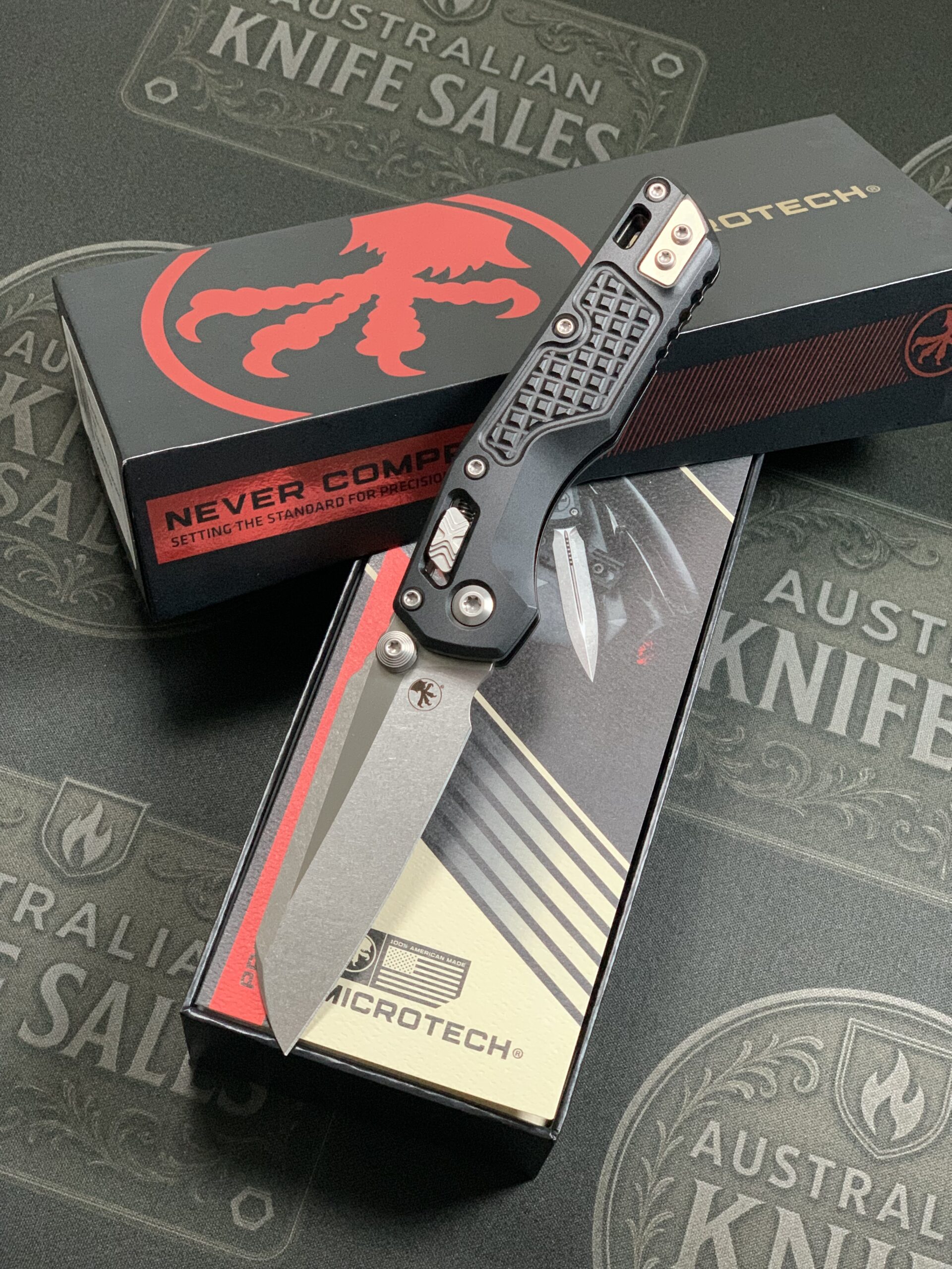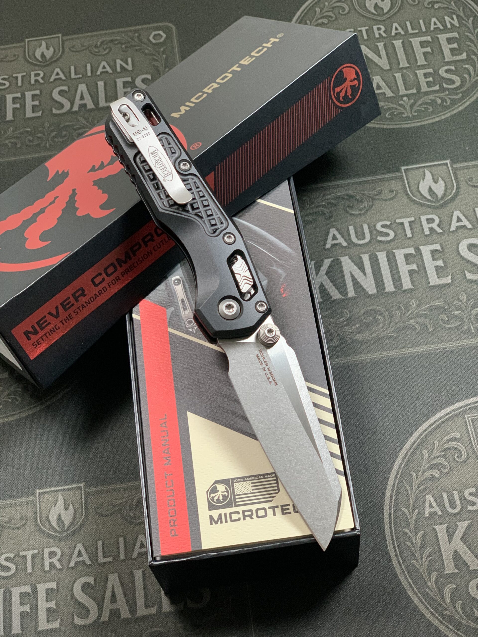 Microtech MSI Mini S/E Stonewash – Frag Black Aluminum Handles