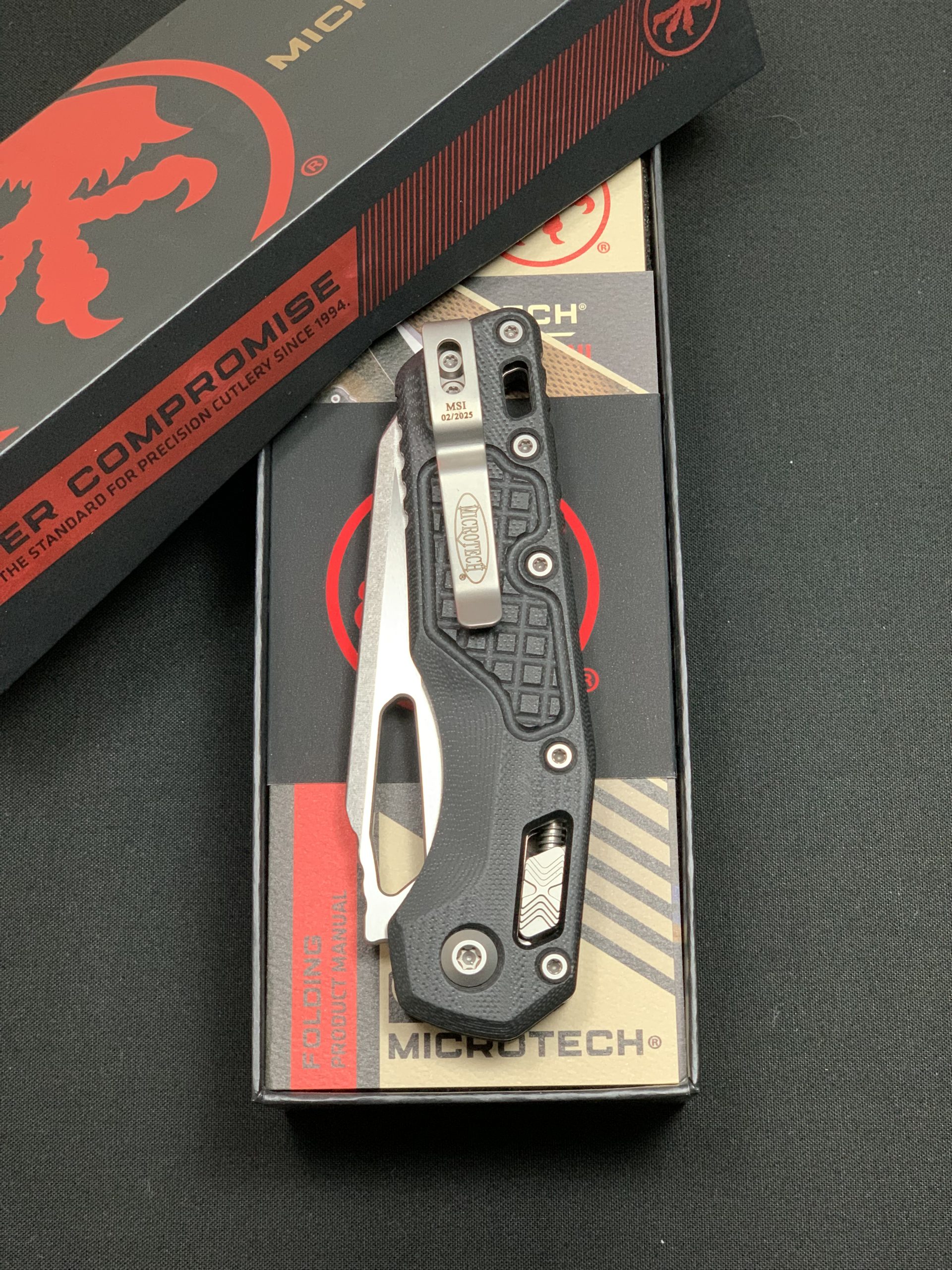 The MSI, or Microtech Standard Issue, is the latest in our collection of manual folders. Designed for heavy-duty use, this piece combines utility and style. The blade is made of M390MK Steel, which was produced especially for Microtech, and the handle features a RAM-LOK Bar Lock and our Iconic X Button on both sides. Complete with a titanium backspacer and reversible pocket clip for left-hand carry.