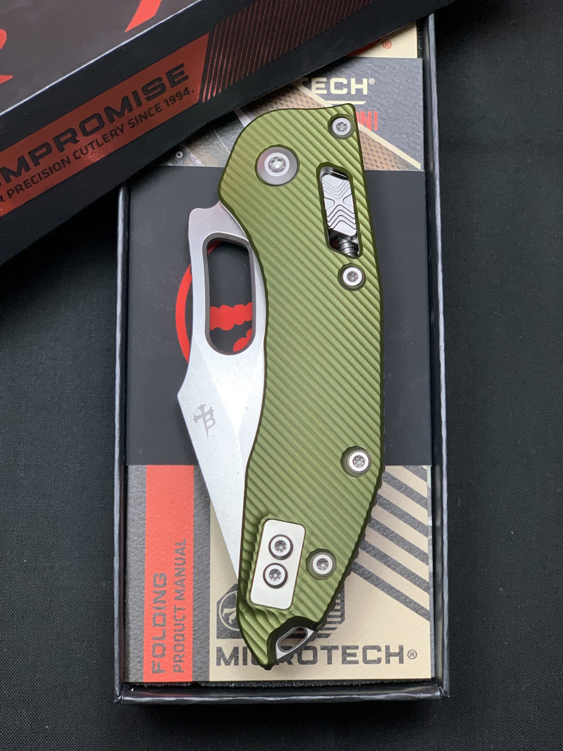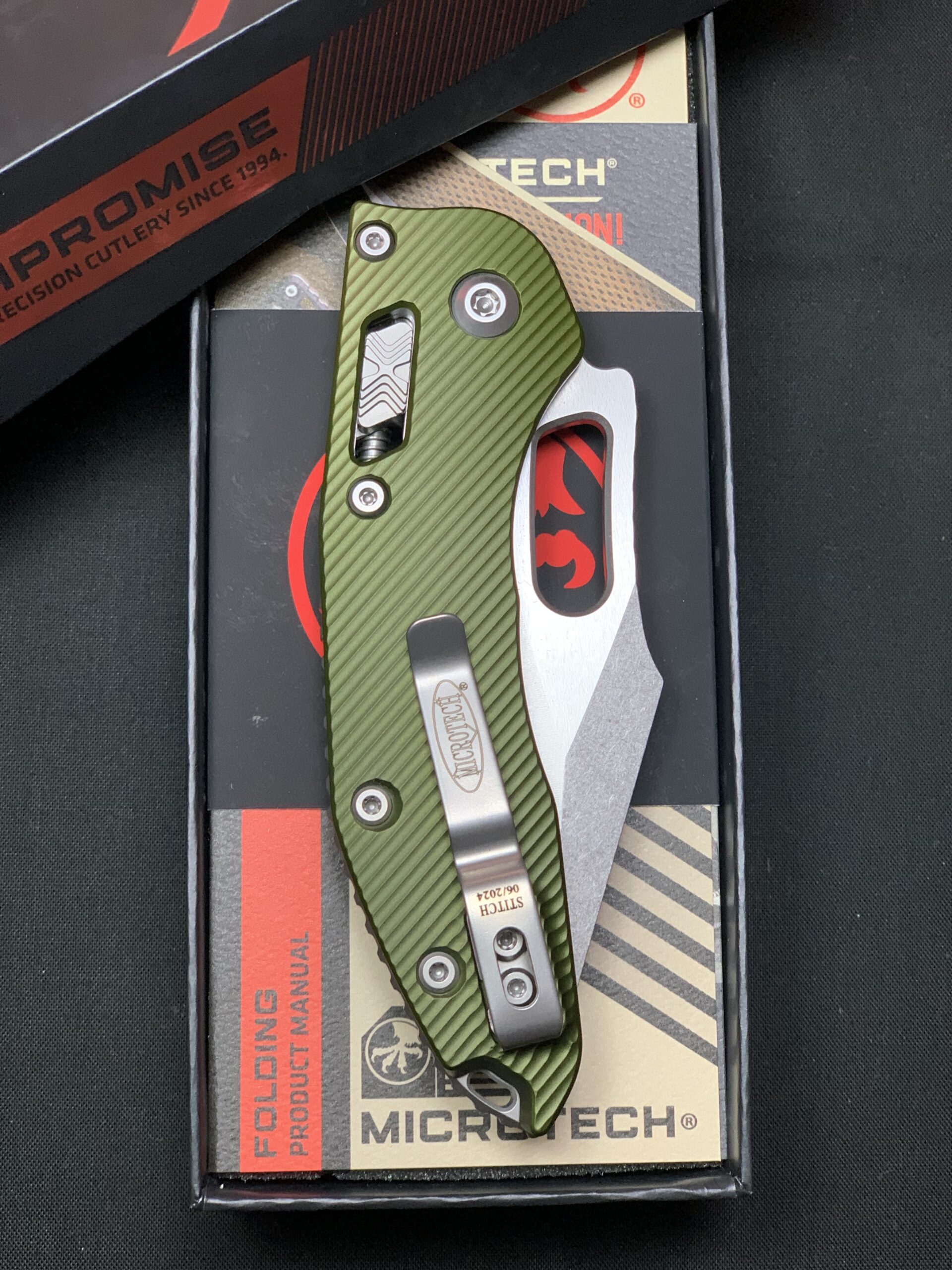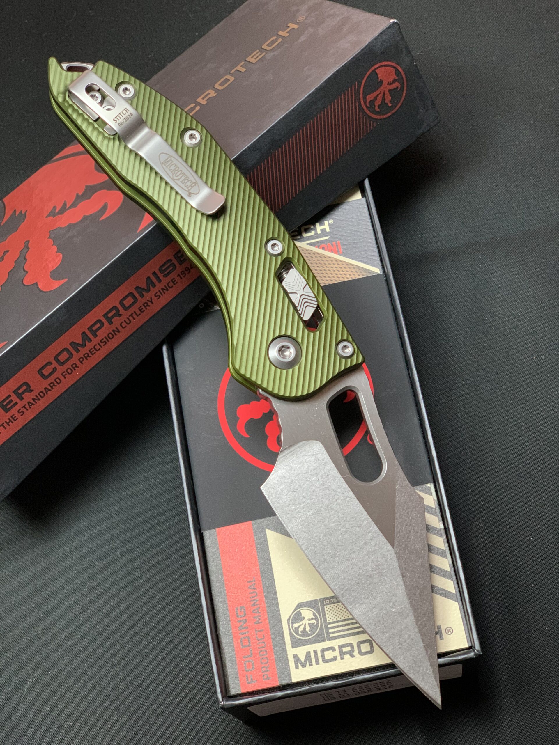Microtech Stitch RAM-LOK™ S/E Stonewash – Fluted OD Green Aluminium