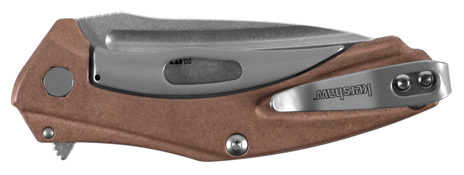 Accessed with the built-in flipper, Kershaw’s KVT ball-bearing opening makes it easy to open the knife one-handed. An oversized pivot provides an attention-grabbing detail on the front of the knife, while our patented Sub-Frame Lock secures the blade and provides a dramatic, contrasting line on the back. A decorative backspacer adds another embellishment. And finally, a custom-designed deep-carry pocketclip echoes the lines of a special recess machined into the handle to complete this good-looking knife.