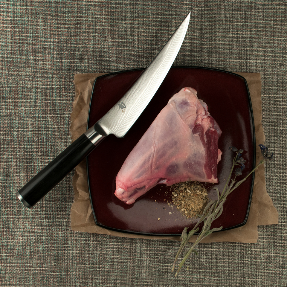 The Shun Classic Boning/Fillet is adept at these two key kitchen chores. For boning, the narrow, sharp, curved blade gets in close to the bone, making it easy to separate meat from bone. Even fibrous tissue is no match for Shun’s extremely sharp edge. It’s perfect for trimming the silver skin from a tenderloin or roast or even making your own cutlets. The narrow blade reduces the drag as you cut against the meat, so cutting is fast and easy. When it comes to filleting fish, the blade’s six-inch length is just right to glide through the body of the fish, quickly removing bones and skin. The D-shaped handle provides a secure grip for excellent control.